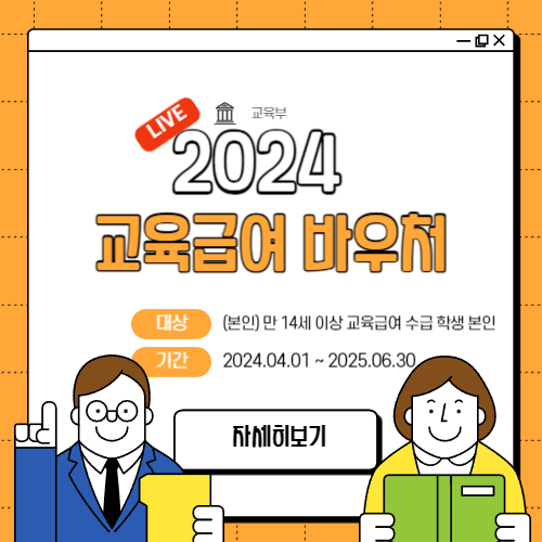 교육급여 바우처는 정부에서 기준 중위소득 50% 이하인 가구의 초중고 학생에게 교육 활동 지원비를 지급하는 제도입니다. 이 교육 활동 지원비를 바우처 형태로 지원해주는게 교육급여 바우처입니다. 작년 2023년도에 이어 2024년도에도 교육급여 바우처 정책안을 내놓았습니다. 아래 교육급여 바우처 내용을 잘 확인하시고 신청 대상이 되시면 늦지 않게 신청하시길 바랍니다.