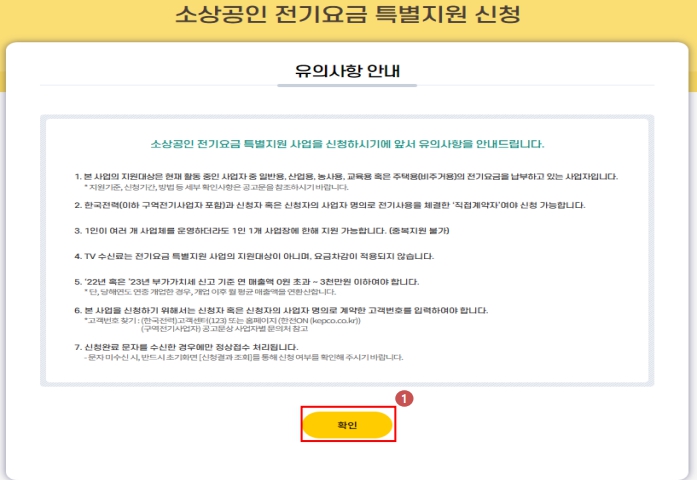 ⚡소상공인전기요금특별지원.kr 초기화면에서 신청결과확인 클릭