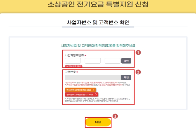 ⚡사업자등록번호 및 고지서에 표기된 고객번호를 입력하신 후 확인 클릭