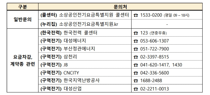 소상공인 전기요금 특별지원 신청 문의 및 공고문